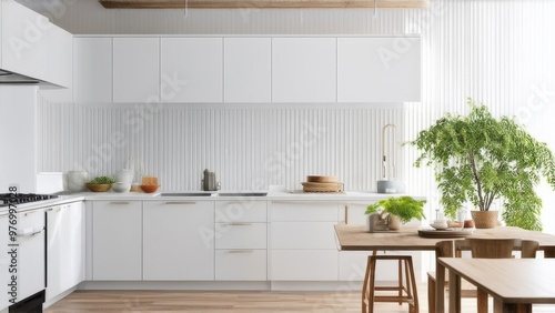 Fototapeta premium Cozy modern kitchen room interior design with white color wall
