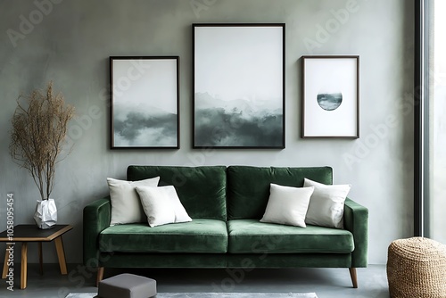 Fototapeta premium Cozy Modern Living Room with Neutral Tones, Stylish Decor, and Elegant...