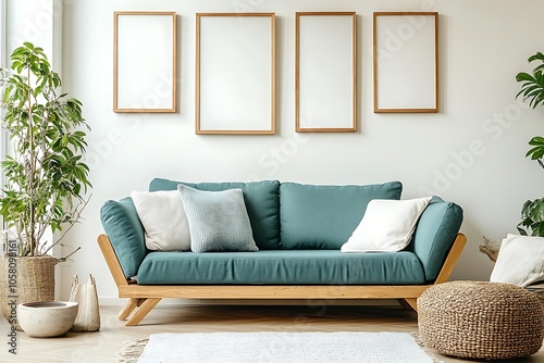 Fototapeta premium Cozy Modern Living Room with Neutral Tones, Stylish Decor, and Elegant...