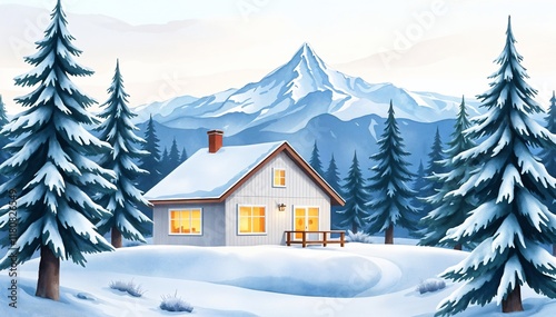 Naklejka premium Cozy Nordic House in Snowy Landscape