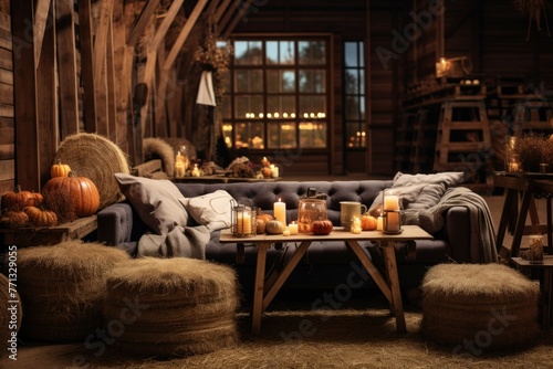 © Michael Böhm, Naklejka premium Cozy October evening in a rustic barn