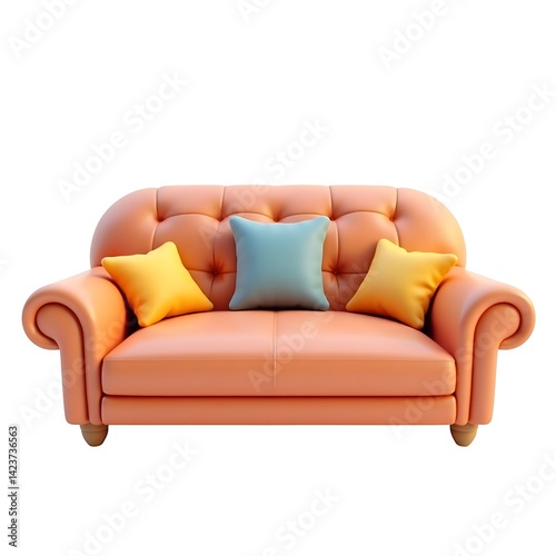 © NeoDesign Hub, Fototapeta premium Cozy peach sofa with pillows on white background