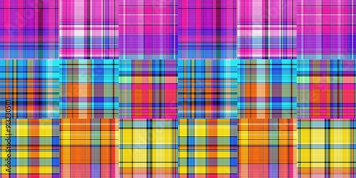 © Limolida Studio, Fototapeta premium Cozy plaid patterns seamless border background in colorfull autum fall home decor. Woven patchwork style effect for seamless edging banner