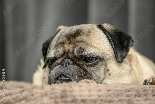 © Михаил Шорохов, Obraz premium Cozy pug lying on the sofa 10