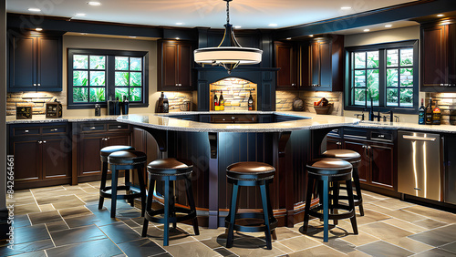 Obraz premium cozy,room,counter,stool,light,Generative AI