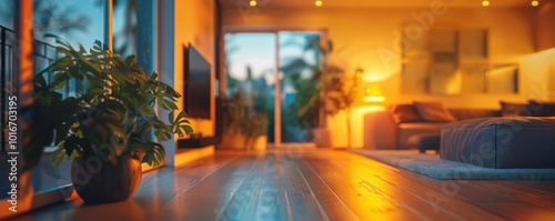 Obraz premium Cozy smart home with automated lighting and temperature control, modern...