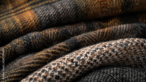 © raining, Fototapeta premium Cozy Textures of Woolen Fabrics in Earthy Tones