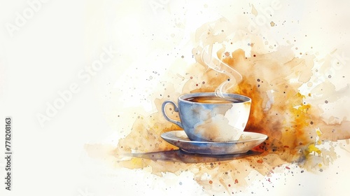 Fototapeta premium Cozy Watercolor Caf Scene with Steaming Hot Beverage