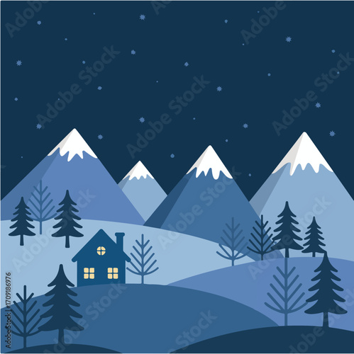 Fototapeta premium Cozy Winter Cabin in Snowy Mountain Landscape – Vector Illustration