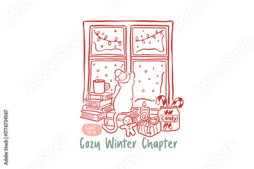 © Boo, Naklejka premium Cozy Winter Delight Christmas Window Illustration Sublimation design