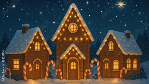 Fototapeta premium Cozy winter gingerbread village desktop wallpaper