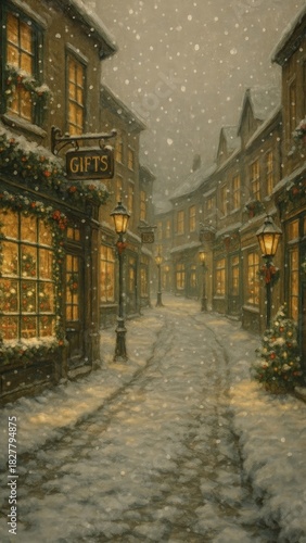 Fototapeta premium Cozy winter street mobile wallpaper