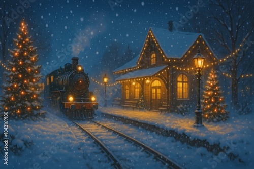 Fototapeta premium Cozy winter train scene