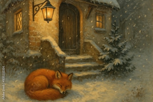 © Rawpixel.com, Fototapeta premium Cozy winter with fox background
