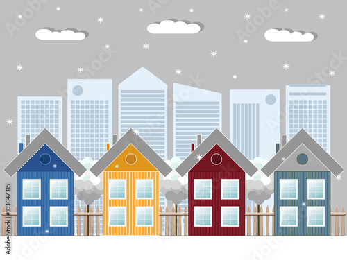 Fototapeta premium Cozy Wooden Houses, Winter Theme