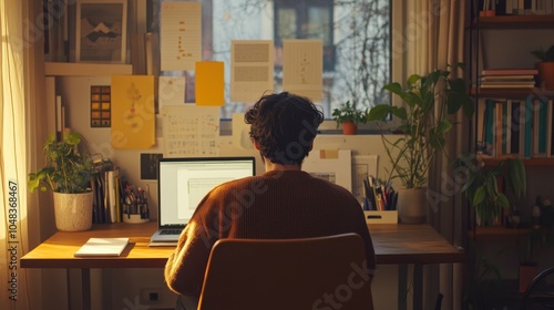 © JH45, Fototapeta premium Cozy Workspace in Warm Lighting