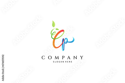 Obraz premium CP handwritten letter logo with Leaf Shape