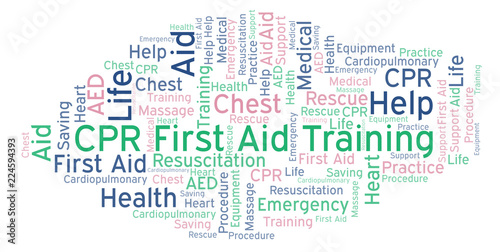 Obraz premium CPR First Aid Training word cloud, made with text only.