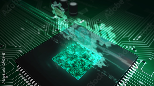 © Skórzewiak, Naklejka premium CPU on board with data management hologram
