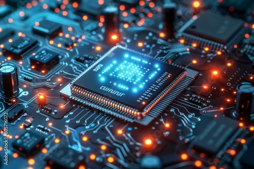 © dendyh7, Obraz premium CPU processor microchip circuit board illustration created with generative ai