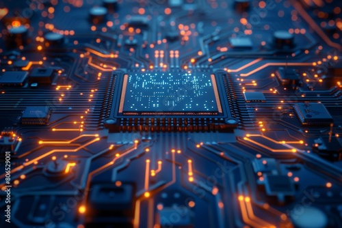 © dendyh7, Obraz premium CPU processor microchip circuit board illustration created with generative ai