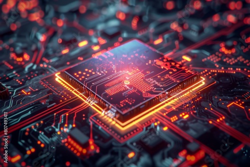 © dendyh7, Obraz premium CPU processor microchip circuit board illustration created with generative ai