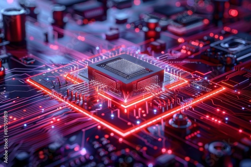 © dendyh7, Obraz premium CPU processor microchip circuit board illustration created with generative ai