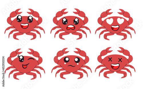 Fototapeta premium Crab cartoon face expression cartoon smile wink sad face expression set collection sea creature marine