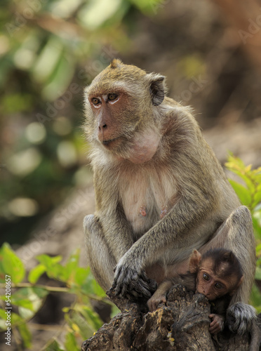 Fototapeta premium Crab - eating macaque (Macaca irus) mother and baby