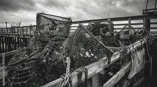 © The 2R Artificiality, Obraz premium Crab pots are docked at the Black and White pier