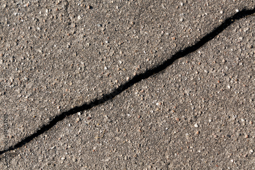 Obraz premium Crack on gray asphalt surface.