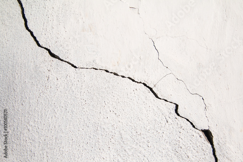 © alisaaig, Fototapeta premium Crack. Texture of old painted white plaster. Cracked wall.