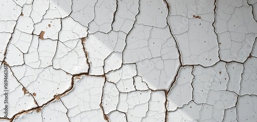 © Jay, Fototapeta premium Cracked, aged white ceramic surface with distressed texture, background, worn
