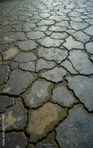 © H4P, Fototapeta premium Cracked and Aged Pavement Texture – Weathered Urban Surface