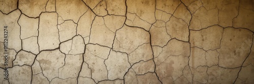 Fototapeta premium Cracked and grungy old wall covered in dirt and peeling paint, grunge, textured
