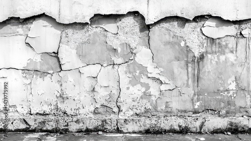 © Георгий Александрови, Obraz premium Cracked and peeling wall texture revealing worn layers in an urban setting during the day