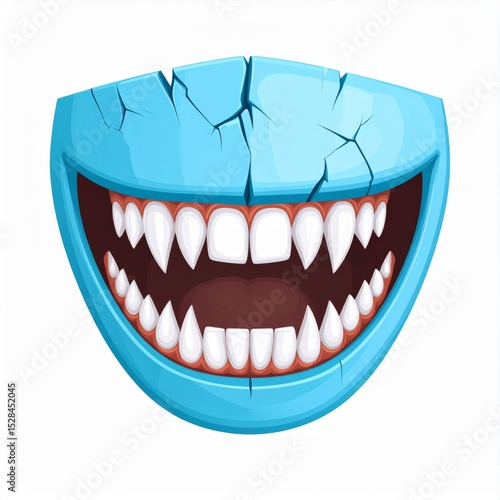 Fototapeta premium Cracked Blue Cartoon Mouth with Sharp Fangs