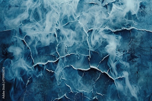 Obraz premium cracked blue cement texture with white smoke. horror background