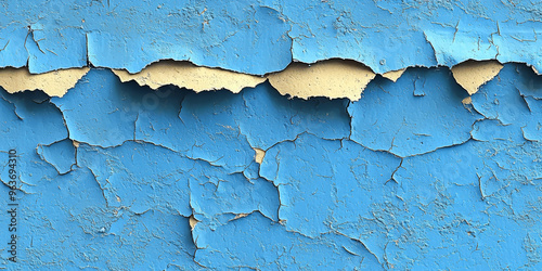 © Vertigo Images, Obraz premium Cracked blue paint on a wall.