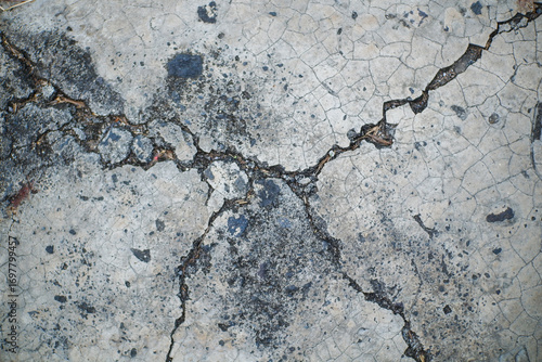 Obraz premium Cracked concrete surface showcasing intricate patterns, texture, and natural...
