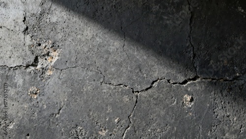 Fototapeta premium Cracked concrete texture with diagonal shadow and rough surface.