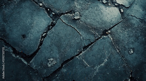 © Fitriyani, Obraz premium Cracked dark blue stone pavement texture.