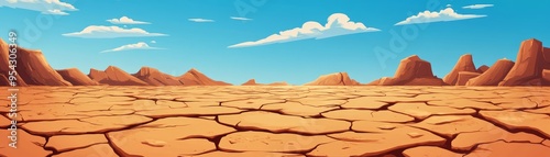 Naklejka premium Cracked Desert Landscape with Mountains and Blue Sky