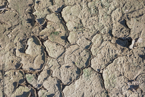 © Damian Pawlos, Fototapeta premium Cracked dried ground texture. Infertile soil top view as background