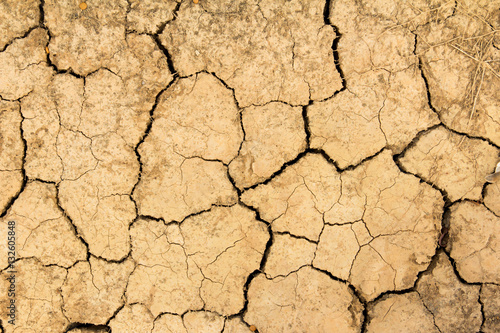 Fototapeta premium Cracked dry brown soil background, global warming effect