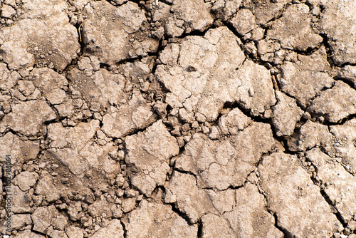 Fototapeta premium Cracked dry brown soil background, global warming effect