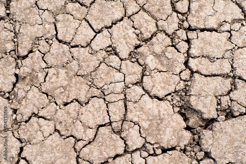 Fototapeta premium Cracked dry brown soil background, global warming effect