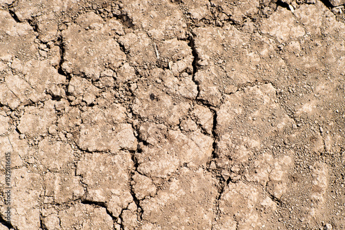Fototapeta premium Cracked dry brown soil background, global warming effect