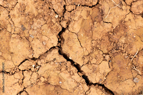 Fototapeta premium Cracked dry brown soil texture background, concept for global warming effect