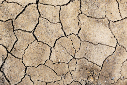 © aerogondo, Obraz premium Cracked earth surface during a dry season in a rural landscape